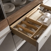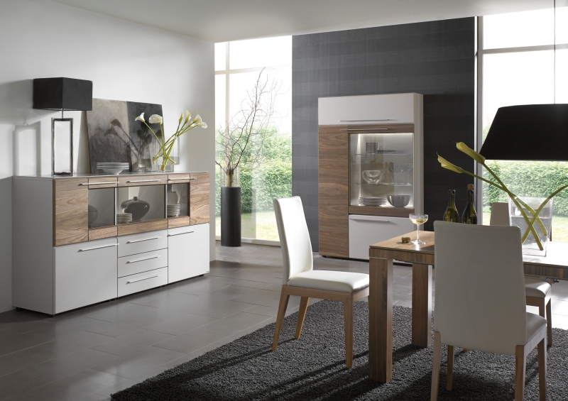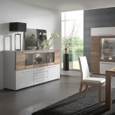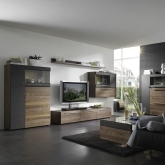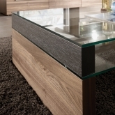 Najwyższej jakości materiały oraz staranność wykonania zapewnią radość z mebli przez długie lata. Oświetlenie oszklonych witryn w trybie dziennym oraz nocnym, daje poczucie nastrojowego ciepła. Grafitowy lakier podkreśla otwarte pory naturalnej okleiny dębowej.